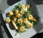 Gebratener Mozzarella auf Ruccolasalat mit Garnelen