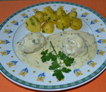 gekochte Fleischblällchen in Petersilsoße