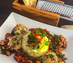 Erdäpfel- Spinat Laibchen mit Schnittlauchdip