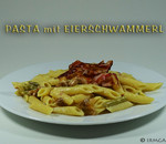 Pasta mit Eierschwammerl, Fisolen und Speck